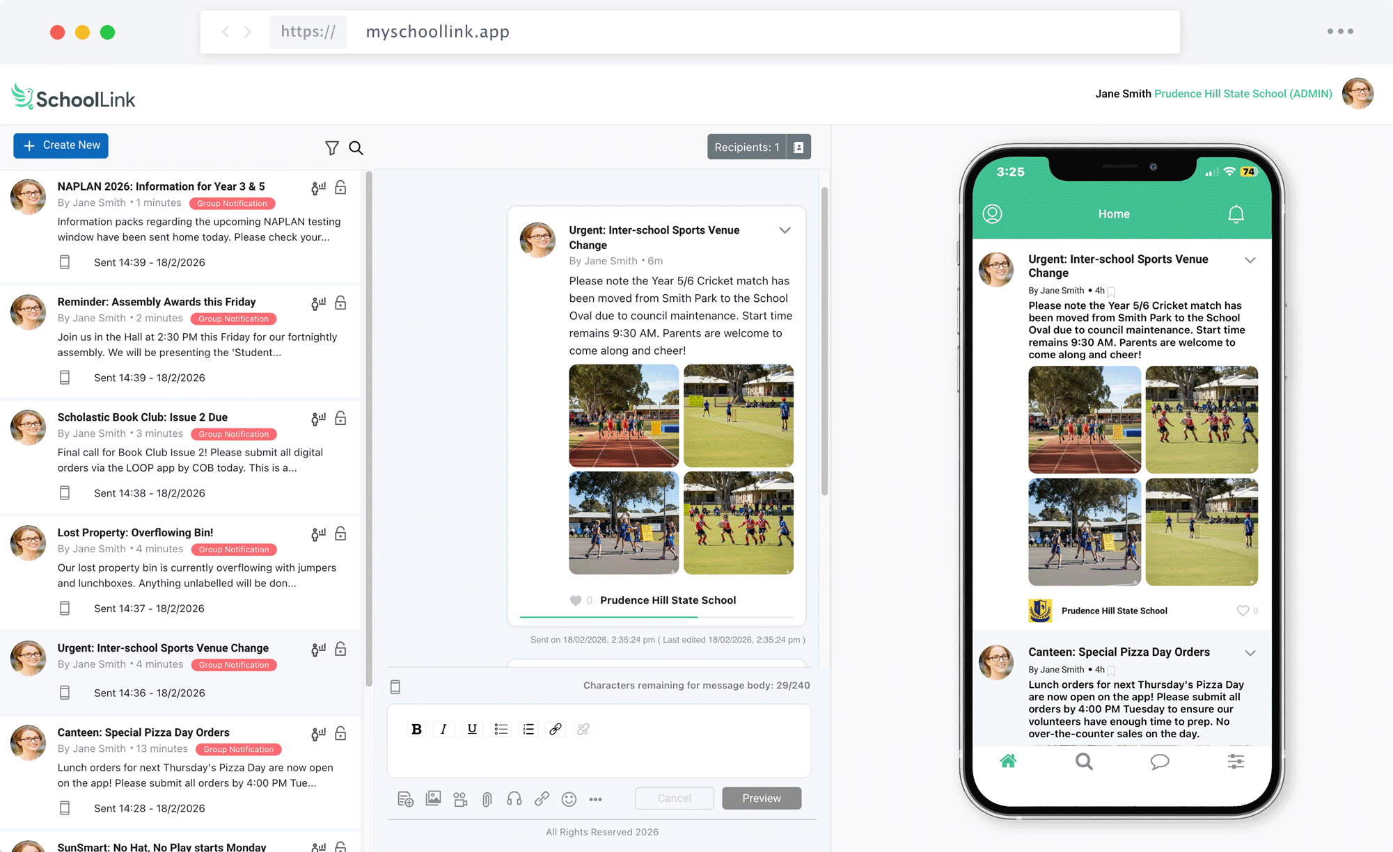 SchoolLink is a modern school communication platform that combines a powerful web-based admin module for schools with iOS and Android mobile apps for parents. Schools create and manage content through the admin dashboard, and parents receive instant push notifications on their phones.